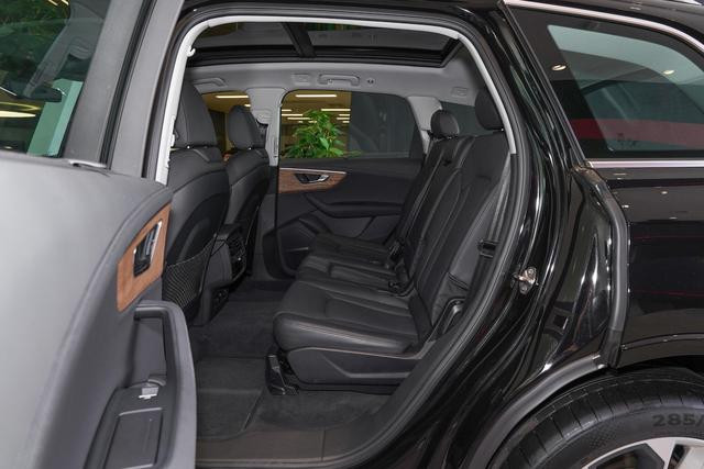 奥迪Q7分别提供5座和7座布局可选,7座车型的第三排座椅空间比较局促,短途乘坐还可以,长时间乘坐会感到有些压抑,如果把第三排座椅放倒,第二排的空间和后备箱的空间与5座版车型相同,身高178厘米的男生坐在后排,腿部空间有三拳左右的距离,头部空间有两群左右的距离,座椅的填充物也很厚实,表面用真皮进行包裹,乘坐舒适性很不错。